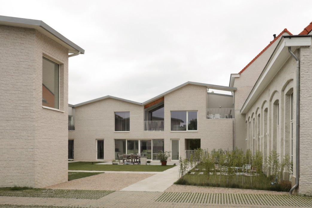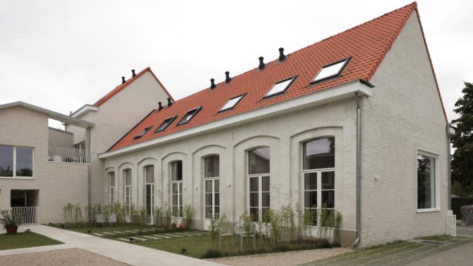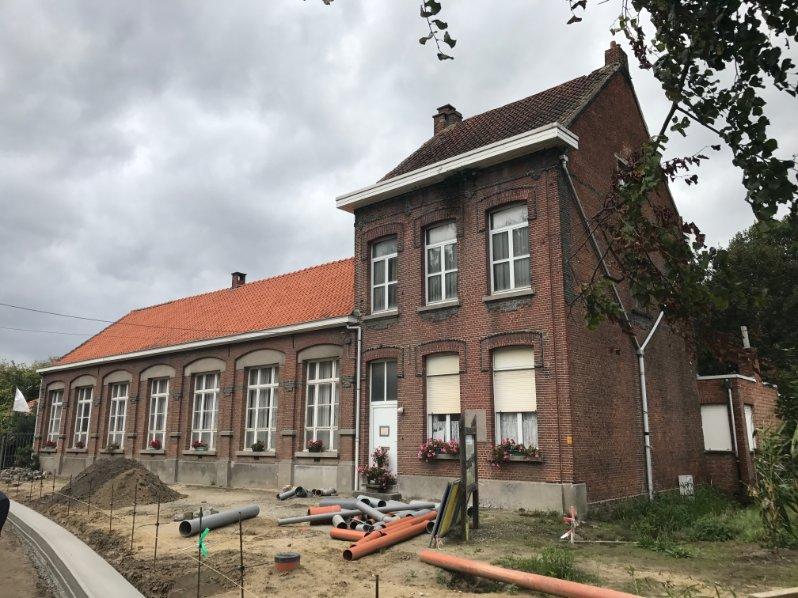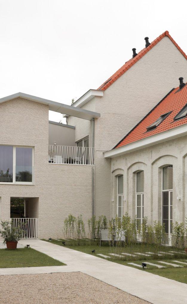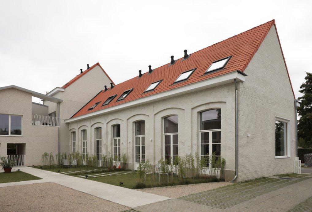 « Ce lieu fait partie de la mémoire collective, on ne pouvait pas l’effacer. C'est pourquoi la façade de cette école de village rurale et la maison du directeur, toutes deux classées, ont été presque intégralement conservées et rénovées, afin de préserver l'identité des lieux. La volumétrie en briques avec toiture à pignons a été préservée, les ajouts de moindre qualité démolis, les fenêtres murées rouvertes et équipées de nouveaux châssis à profil fin », expliquent Tom et Hans.