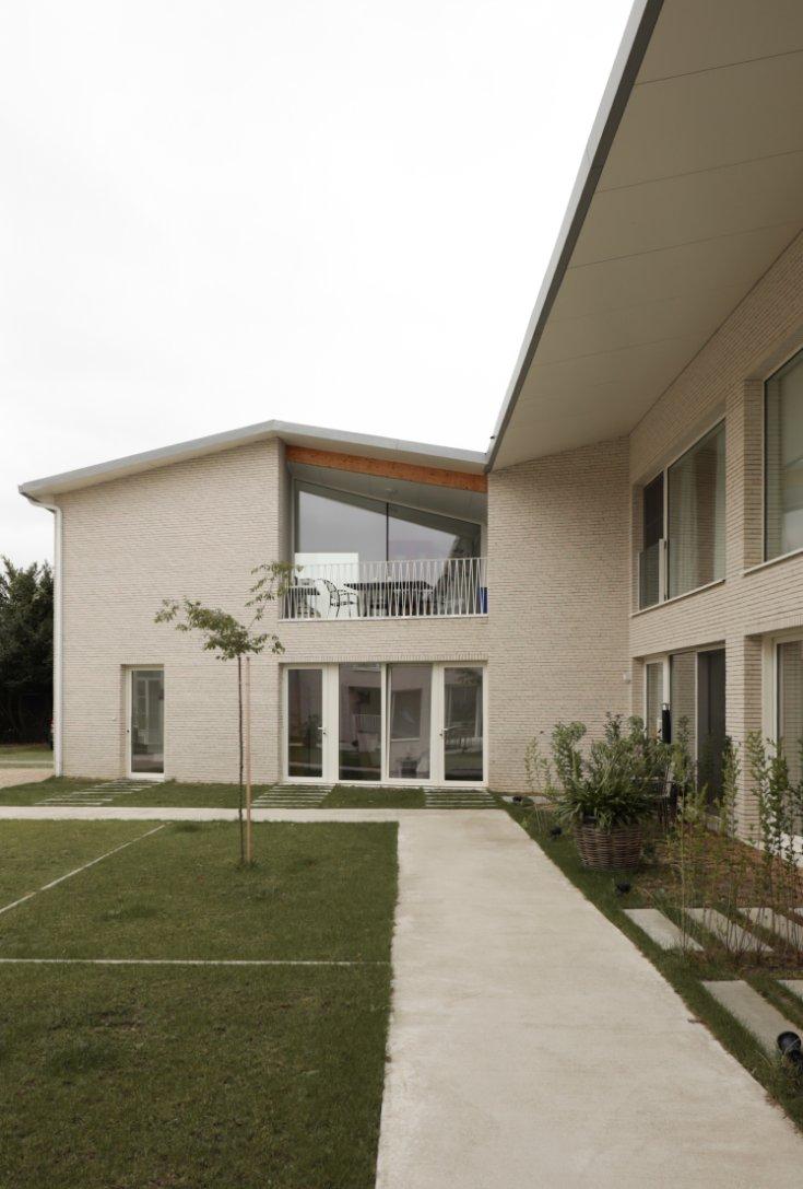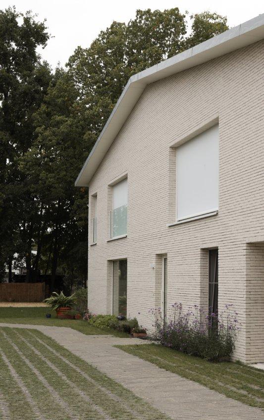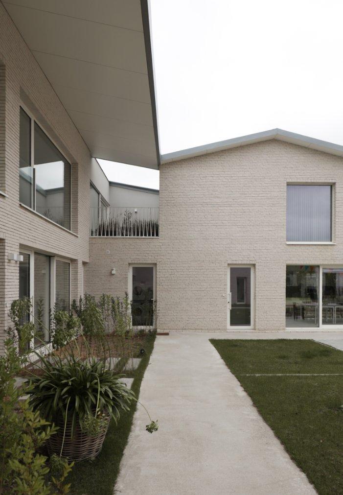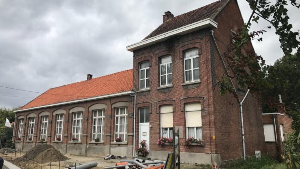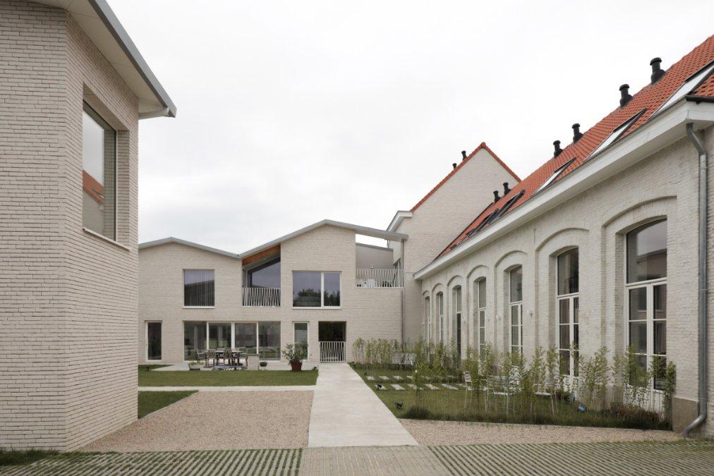 « Ce lieu fait partie de la mémoire collective, on ne pouvait pas l’effacer. C'est pourquoi la façade de cette école de village rurale et la maison du directeur, toutes deux classées, ont été presque intégralement conservées et rénovées, afin de préserver l'identité des lieux. La volumétrie en briques avec toiture à pignons a été préservée, les ajouts de moindre qualité démolis, les fenêtres murées rouvertes et équipées de nouveaux châssis à profil fin », expliquent Tom et Hans.