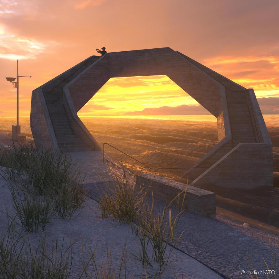 “C’est un repère spatial avec une symbolique. Une sculpture robuste et dynamique, comme un élément de liaison entre terre et mer”, dit Studio Moto.