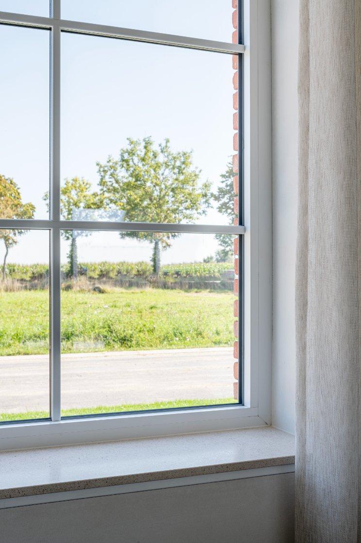 In het opendraaiende deel van het raam vervangt ThermoFibra het staal door ingegoten glasvezelstrengen die tijdens het extrusieproces in het profiel worden geïntegreerd. Deze technologie levert een raam op dat langer meegaat, stabieler blijft en een Uf-waarde haalt vanaf 0,85 W/m²K. Bovendien zijn de ramen makkelijker te bedienen en vergen ze minder onderhoud, dankzij het lagere gewicht en de verminderde belasting van het beslag.