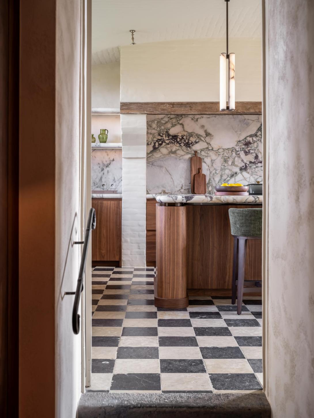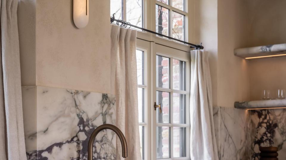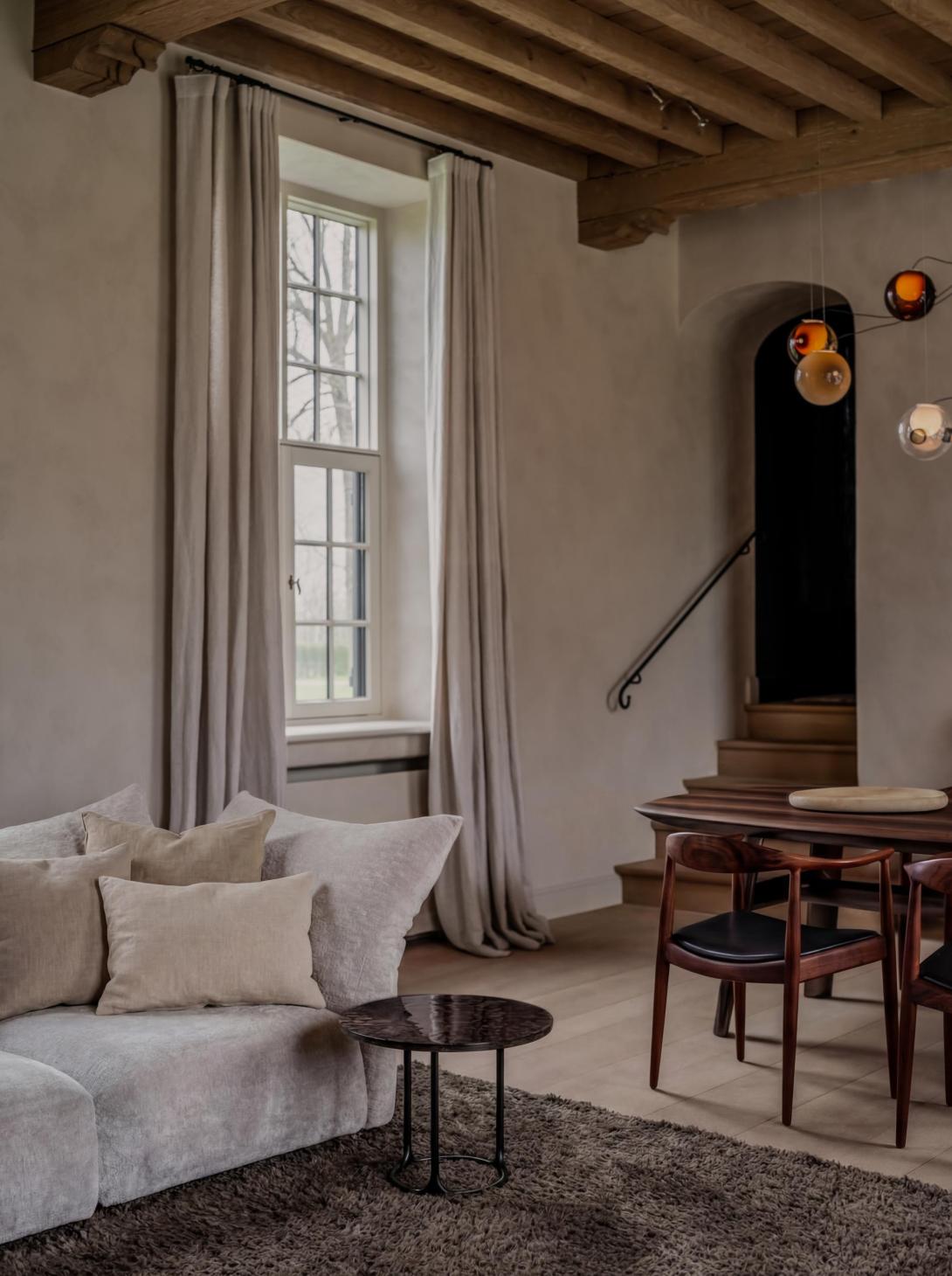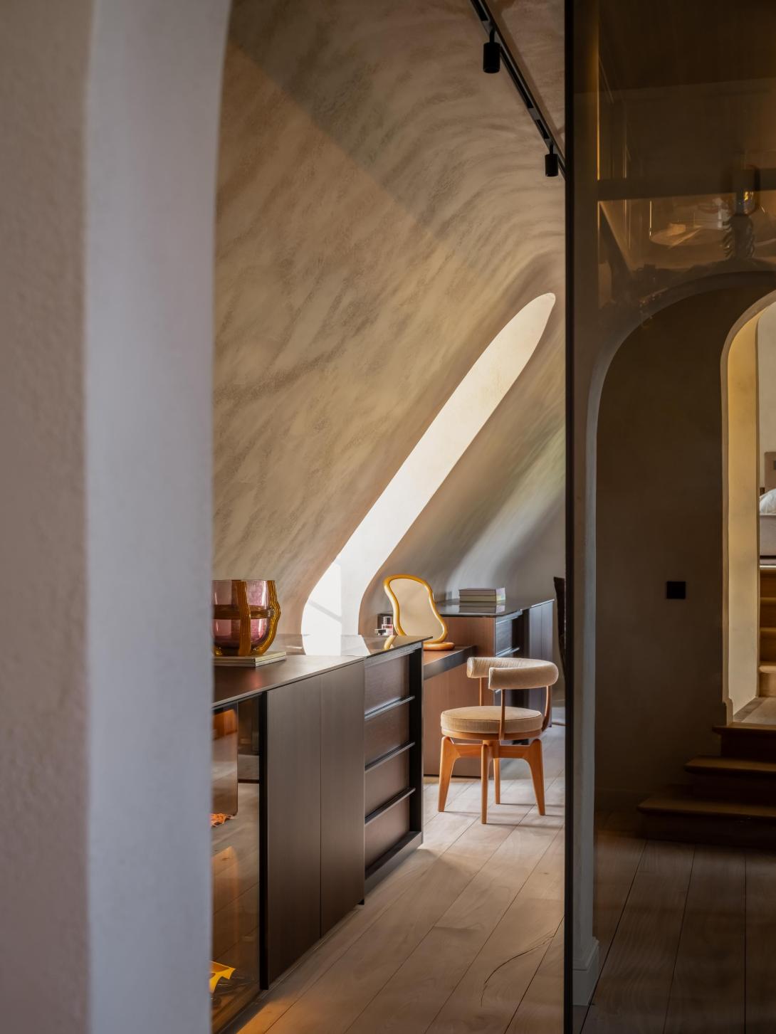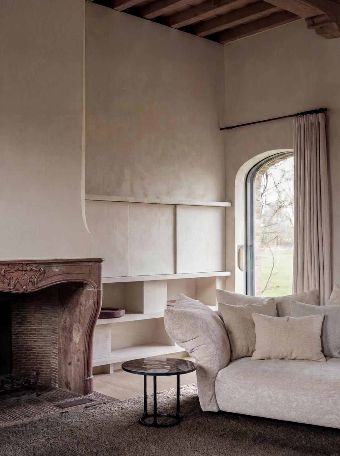Grote ingrepen waren voor deze bijzondere transformatie niet nodig. Dankzij uitgekiende keuzes kon het architectenduo een luxueus, hedendaags interieur creëren dat geworteld blijft in zijn traditionele context. Waardevolle bestaande materialen werden zorgvuldig gerecupereerd of behandeld, en zo in hun kracht gezet, terwijl een ingetogen kleurenpalet en ambachtelijke schildertechnieken klassieke structuren een hedendaags elan geven. Het geheel werd afgewerkt met subtiele accenten in brons en gepatineerde messing, die perfect de brug slaan tussen verleden en heden.