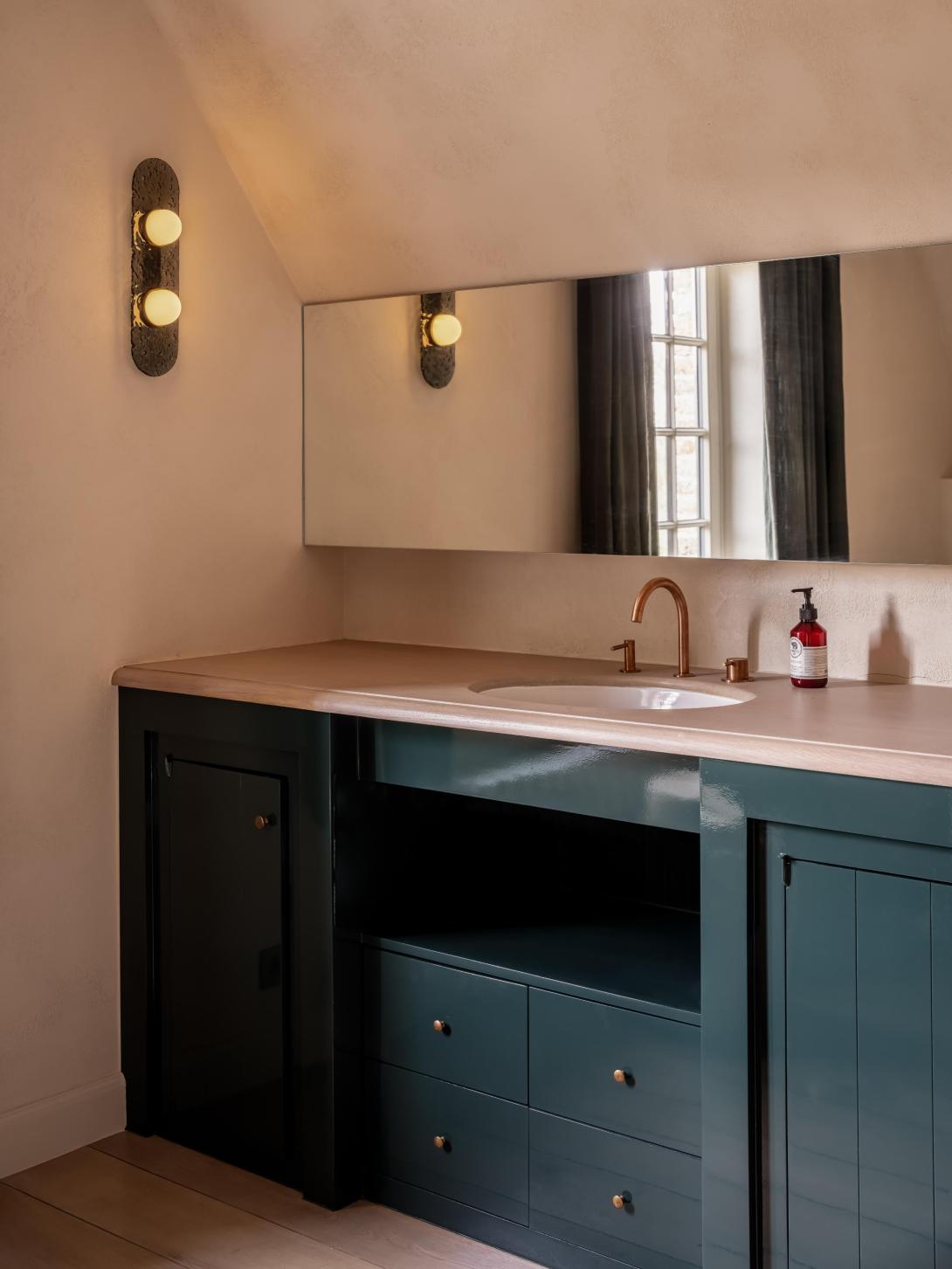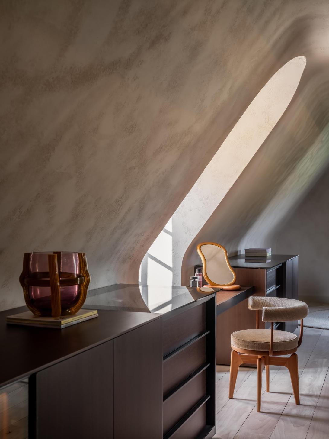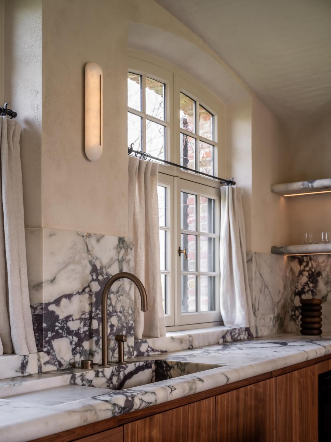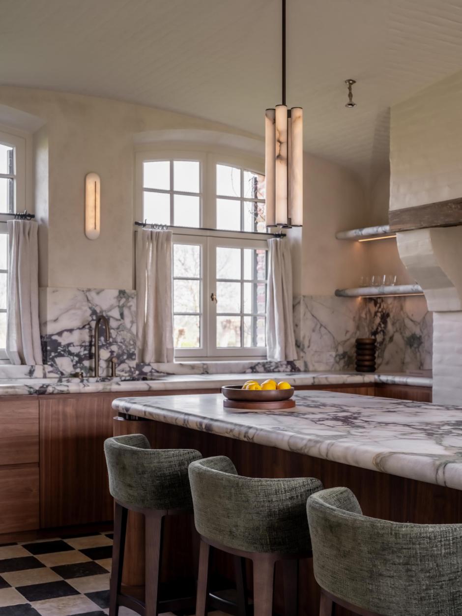 Grote ingrepen waren voor deze bijzondere transformatie niet nodig. Dankzij uitgekiende keuzes kon het architectenduo een luxueus, hedendaags interieur creëren dat geworteld blijft in zijn traditionele context. Waardevolle bestaande materialen werden zorgvuldig gerecupereerd of behandeld, en zo in hun kracht gezet, terwijl een ingetogen kleurenpalet en ambachtelijke schildertechnieken klassieke structuren een hedendaags elan geven. Het geheel werd afgewerkt met subtiele accenten in brons en gepatineerde messing, die perfect de brug slaan tussen verleden en heden.