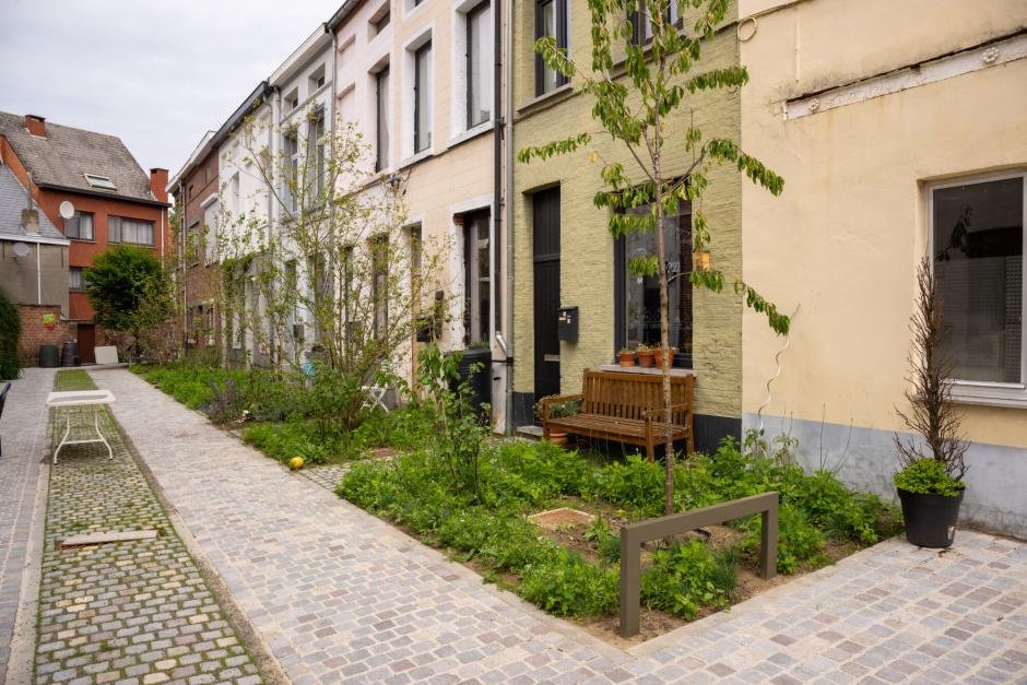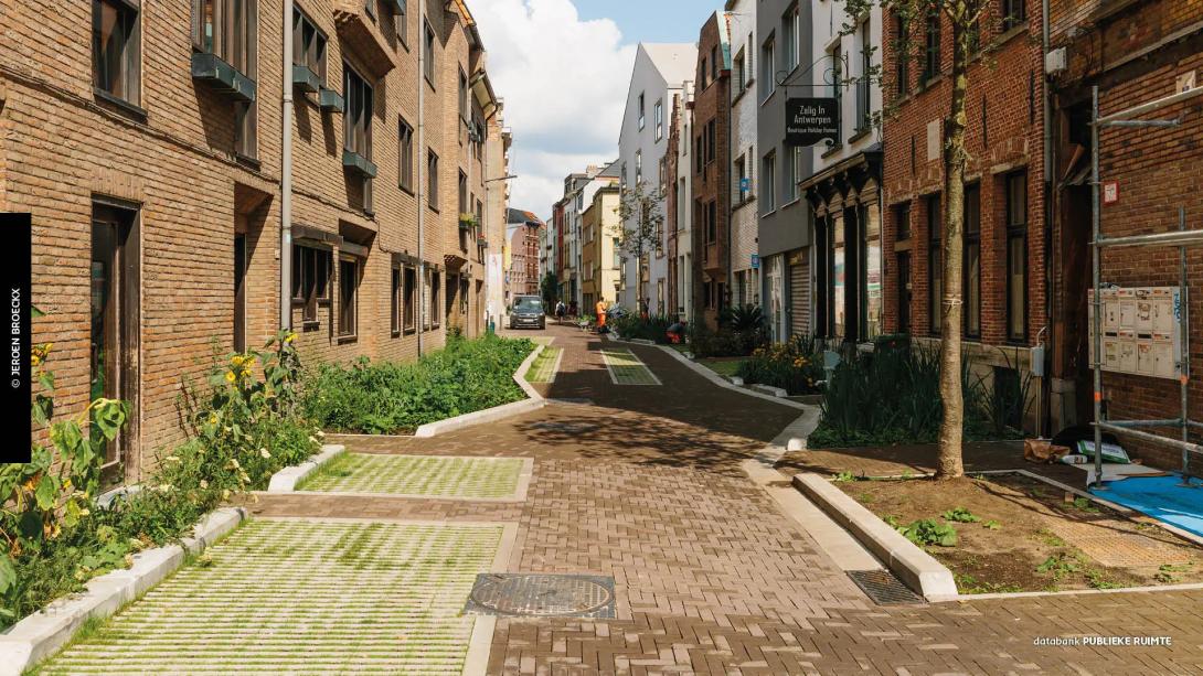 Ontharding – het weghalen van asfalt, betontegels en andere dichte verharding – creëert ruimte voor wadi’s, plantvakken en bomenrijen die zowel water bufferen als geluid dempen. Antwerpen zet met programma’s zoals “Antwerpen Breekt Uit” en de quick wins-ontharding expliciet in op minder grijs en meer groen-blauw in straten, pleinen en schoolomgevingen, onder meer om de leefbaarheid en akoestische kwaliteit te verhogen.