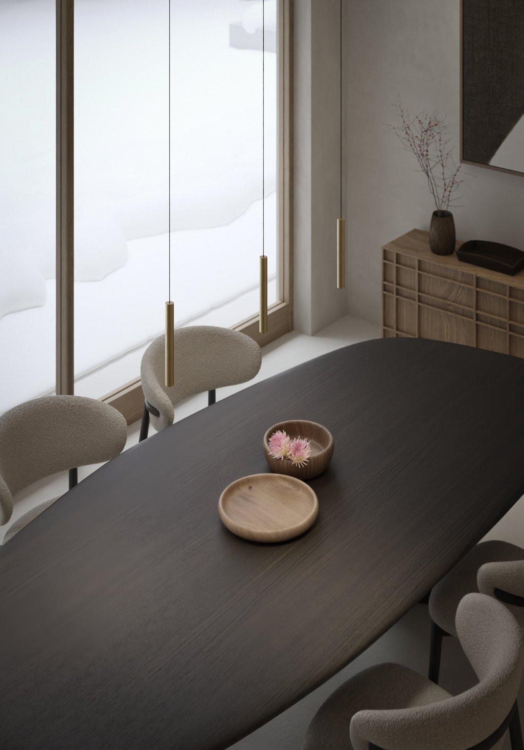Noite is beschikbaar in twee hoogtes: 28 mm en 60 mm. Dat lijkt een puur functionele keuze, maar beide maten verwijzen bewust naar de eeuwenoude verhouding tussen moer- en kinderbalken. In hedendaagse interieurs biedt dit ontwerpers een bijzonder krachtige tool:
