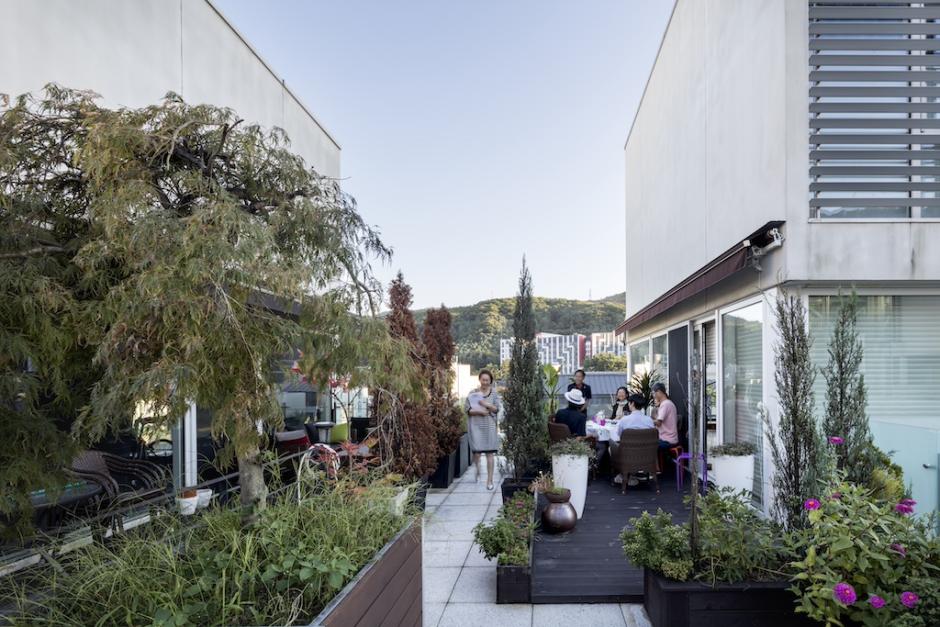 Grotere huisvestingsprojecten bevatten ook relationele elementen, zodat zelfs bewoners die alleen wonen niet geïsoleerd leven. Pangyo Housing (Seongnam, Republiek Korea 2010), een complex van negen laagbouw woonblokken is ontworpen met niet-dwingende transparante volumes op de begane grond die de onderlinge verbondenheid tussen buren katalyseren. Een gemeenschappelijk dek op de tweede verdieping moedigt interactie aan, met ruimtes om samen te komen, speeltuinen, tuinen en bruggen die het ene woonblok met het andere verbinden.