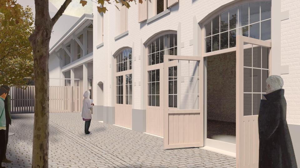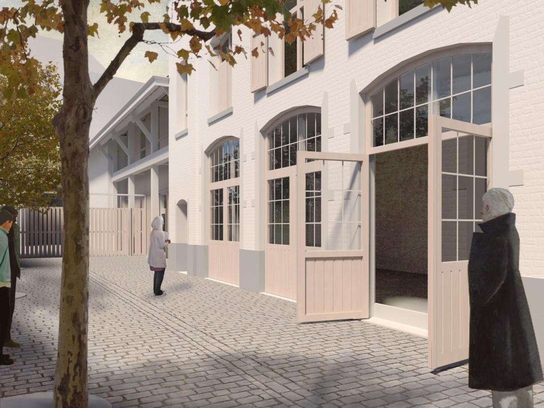 In augustus 2024 gaf de stad officieel het startschot voor de restauratiewerkzaamheden. De aanpak is gebaseerd op het principe dat de erfgoedwaarde het ontwerpkompas vormt: alleen wat de historische leesbaarheid belemmert, verdwijnt. Dat betekent concreet dat recente invulwanden, een bijbouw aan de inkom en een luifel op het binnengebied worden verwijderd. De storende elementen die in de loop der decennia werden toegevoegd, hebben de oorspronkelijke gevelopbouw vertroebeld. Door ze weg te nemen, wordt het ritme van open en gesloten traveeën opnieuw afleesbaar en treedt de bakstenen gevel opnieuw in dialoog met de aanpalende bebouwing.