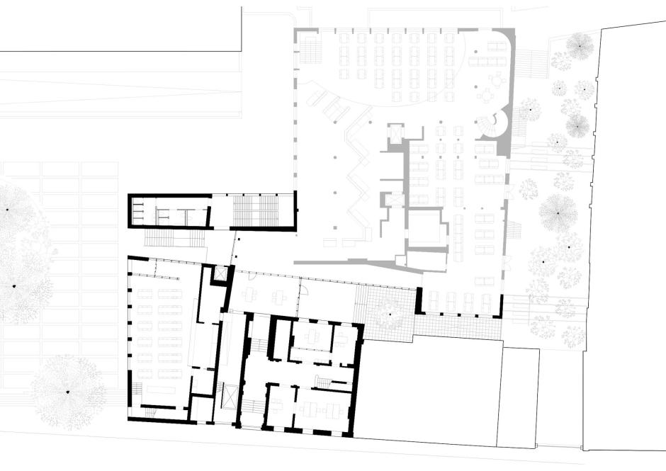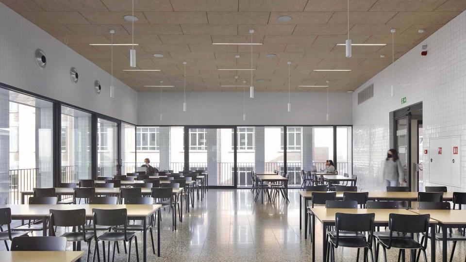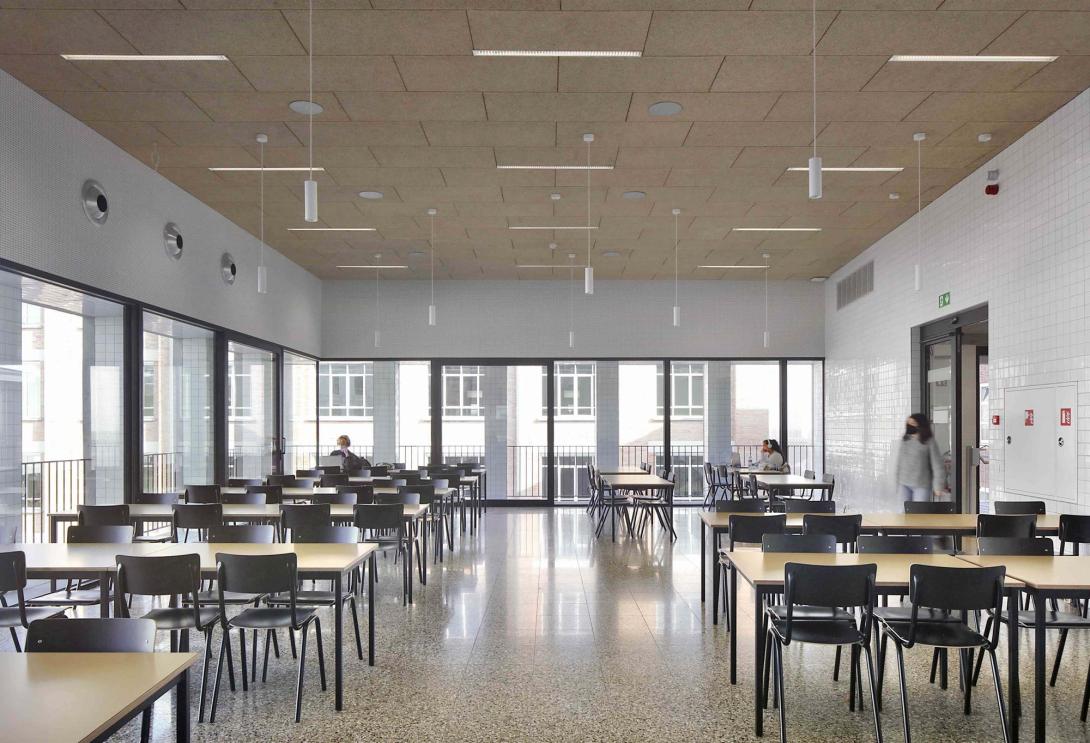 Ook de logistiek van bevoorrading werd hertekend: nieuwe goederenruimtes aan de voorkant moeten het studentenplein ontlasten, zodat dit plein echt als verblijfsruimte kan functioneren. Het resultaat is een interne organisatie die de dagelijkse capaciteit van het restaurant ondersteunt, met lange openings- en service-uren, maar tegelijk ruimte biedt voor informele studieplekken en ontmoeting.