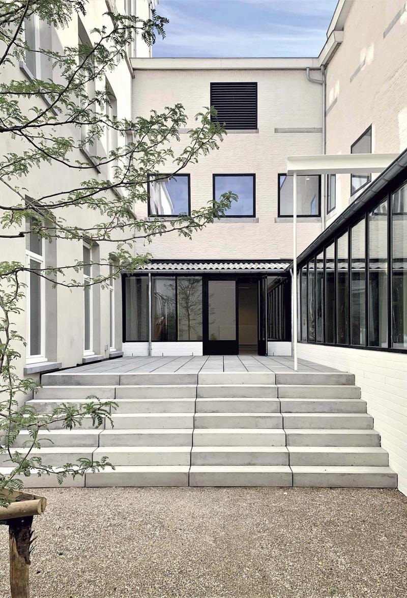 Een cruciale ingreep bleek het “ontdichten” van de tussenruimte tussen herenhuis en restaurant: alle aanhangsels zijn verdwenen, waardoor daglicht opnieuw diep in de gebouwen kan binnendringen. Tegelijk werd de naastgelegen tuin in het project geïntegreerd als tuinterras, waardoor de erfgoedcontext niet alleen bekeken, maar ook letterlijk gebruikt wordt door studenten en personeel. De restauratie van het herenhuis tot kantoorruimte voor UGent-medewerkers koppelt dan weer het dagelijkse universiteitsleven rechtstreeks aan de historische schil van de site.