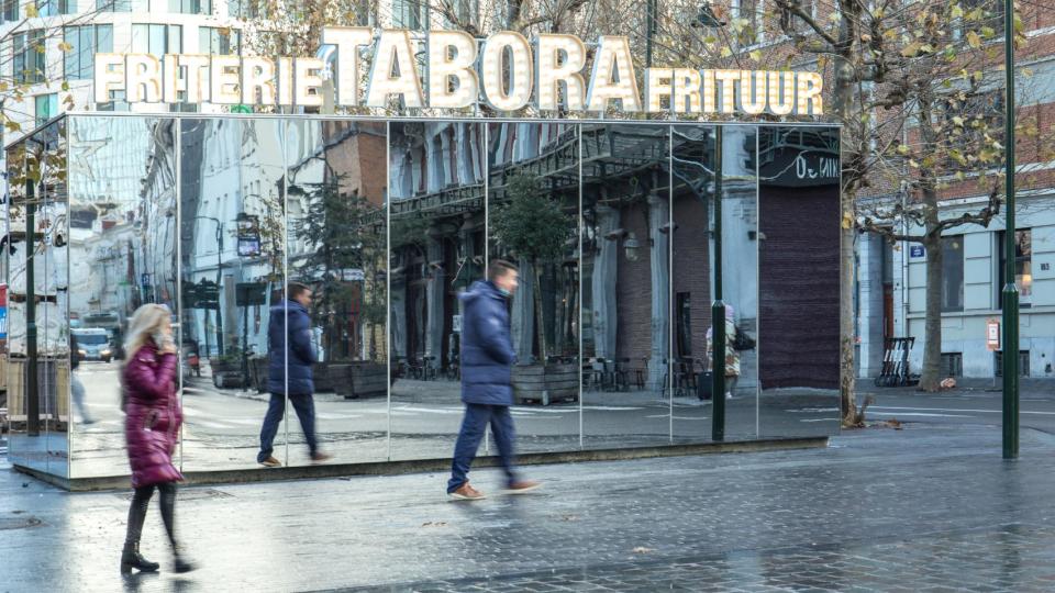 Thomas Hick: “De Stad Brussel was op zoek naar een frietkot met een eigentijds karakter en identiteit, die net zoals de gekende rode telefoonhokjes in Londen, een herkenbaar icoon zou vormen in het straatbeeld. Terwijl het functioneel bleef voor de friturist.”