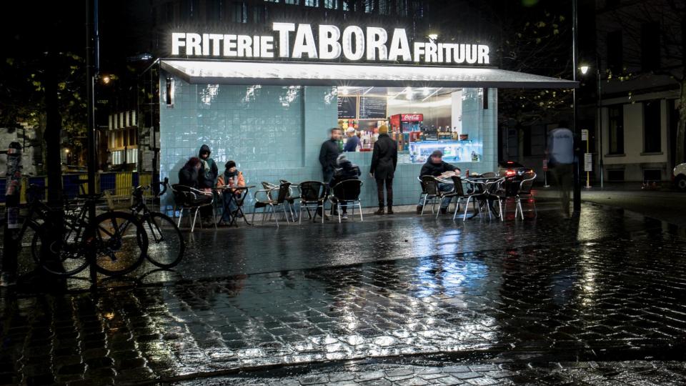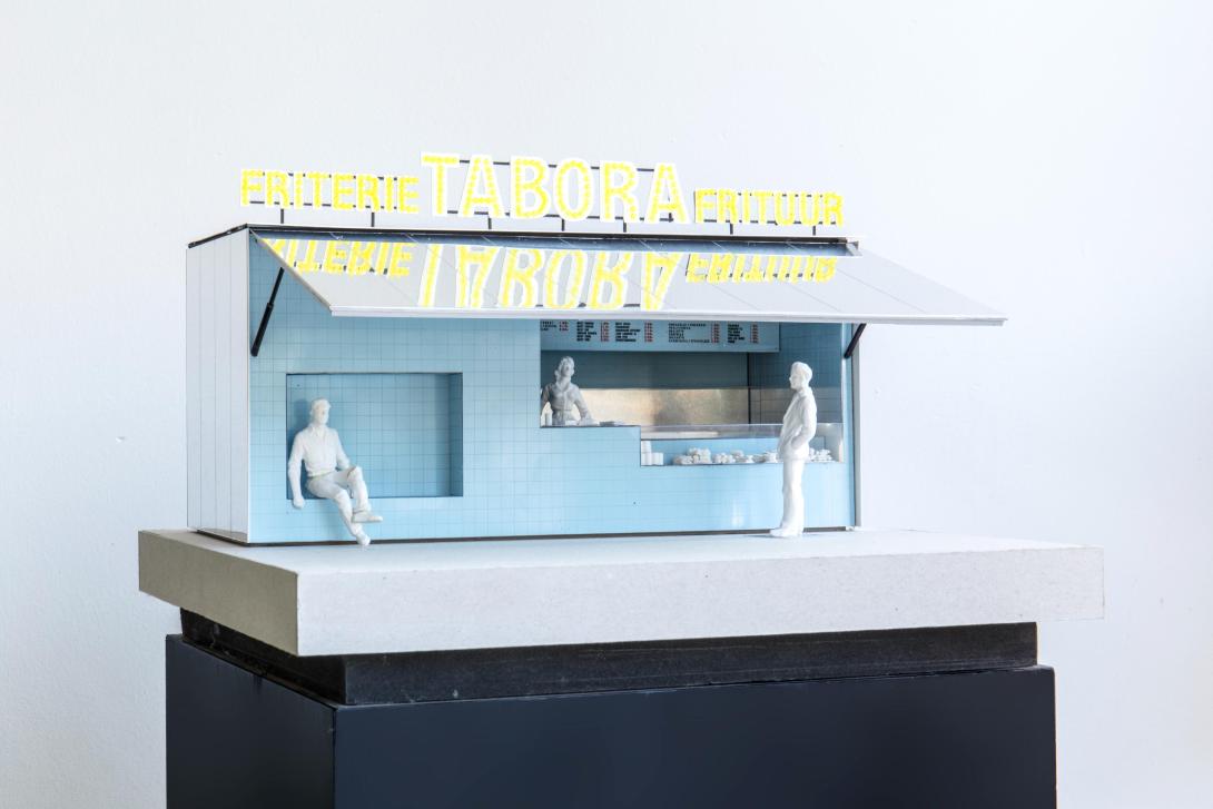 Mo Vandenberghe: “De basis en vorm werden voor alle frietkoten dezelfde, maar elke lichtreclame werd uniek waardoor elk frietkot zijn eigen karakter heeft. Ook de tegelkleur werd telkens anders, precies om die eigen identiteit nog te versterken.”