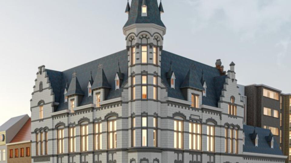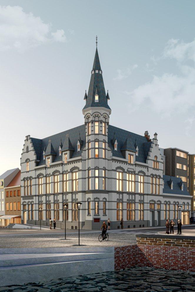 De erfgoedstatus bepaalde vanaf het begin de aanpak van het project. Bressers Architecten kreeg de opdracht om samen met gespecialiseerde partners een ontwerp te ontwikkelen dat het monumentale karakter bewaart en tegelijkertijd een nieuwe dynamiek brengt. Historisch waardevolle elementen zoals de gevelornamenten, het smeedwerk en het buitenschrijnwerk worden zorgvuldig gerestaureerd of gereconstrueerd volgens het oorspronkelijke model. Tegelijkertijd verdwijnen latere toevoegingen uit de jaren ’70, zodat de authentieke structuur opnieuw zichtbaar wordt.