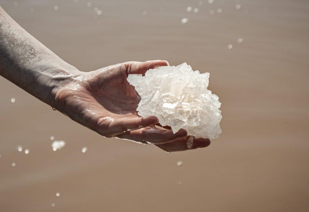 Natriumchloride, beter bekend als zout, is overal. Het wordt van oudsher gebruikt en is overvloedig aanwezig in de natuur: het houdt plaatselijke ecosystemen in stand, maakt wegen ijsvrij, is van vitaal belang voor allerlei industriële processen en ligt waarschijnlijk op uw keukentafel als smaakmaker voor uw maaltijden. Tegenwoordig wordt er relatief weinig waarde aan gehecht en lijkt er niet genoeg onderzoek en belangstelling te zijn voor al zijn fysieke, mechanische of esthetische eigenschappen. En toch is het een materiaal met oneindige, buitengewone mogelijkheden. Afgezien van zijn levensondersteunende kwaliteiten is zout betaalbaar, makkelijk verkrijgbaar, antibacterieel, vuurbestendig, kan het vocht en warmte opslaan en is het goed in het weerkaatsen en verspreiden van licht.