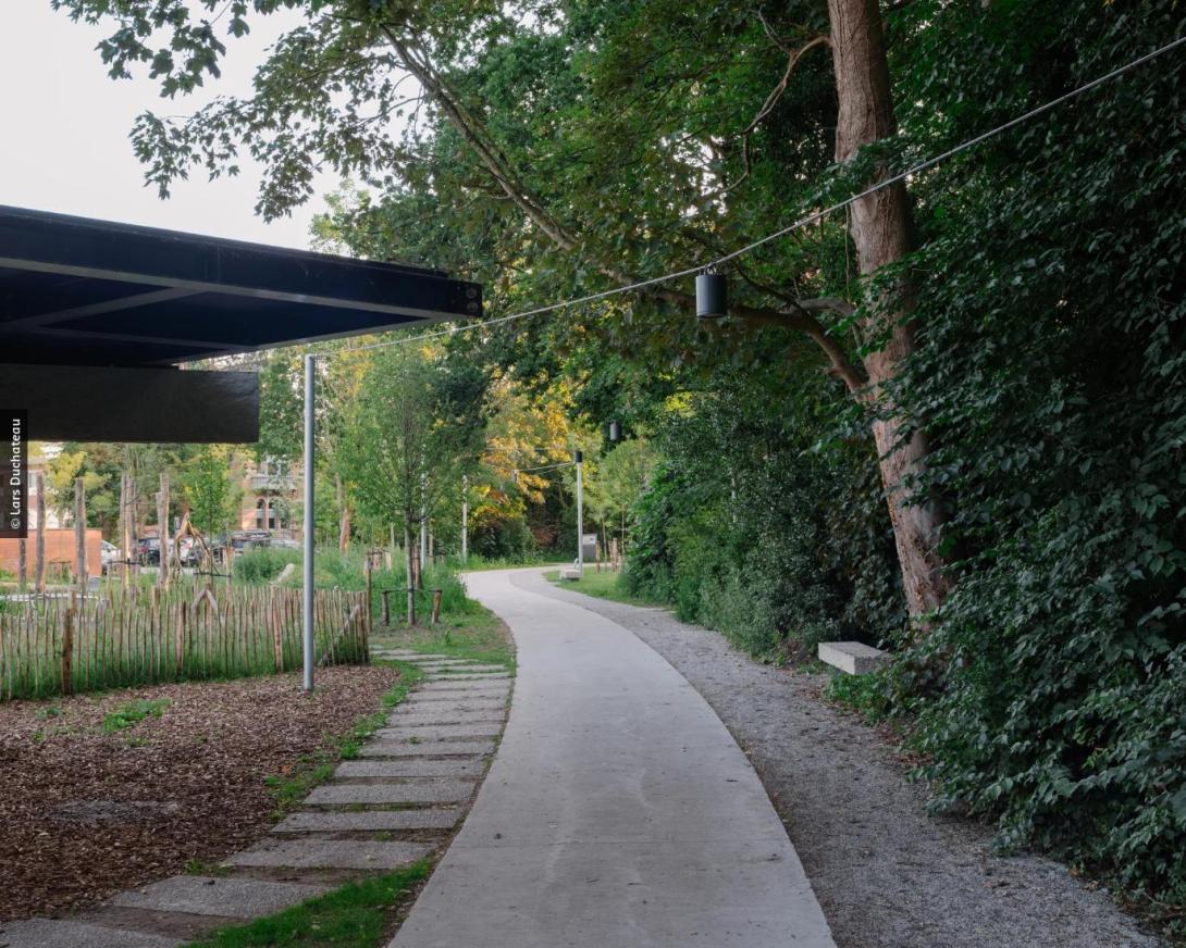 Het Dr. Egide Defeverpark transformeert een voorheen verborgen, ommuurde villatuin in Gistel tot een verwelkomende publieke ruimte die verschillende groene plekken in de stad met elkaar verbindt. Het park verweeft natuur, erfgoed en gemeenschap tot een duurzame groene long die ontmoeting, biodiversiteit en zachte mobiliteit stimuleert.