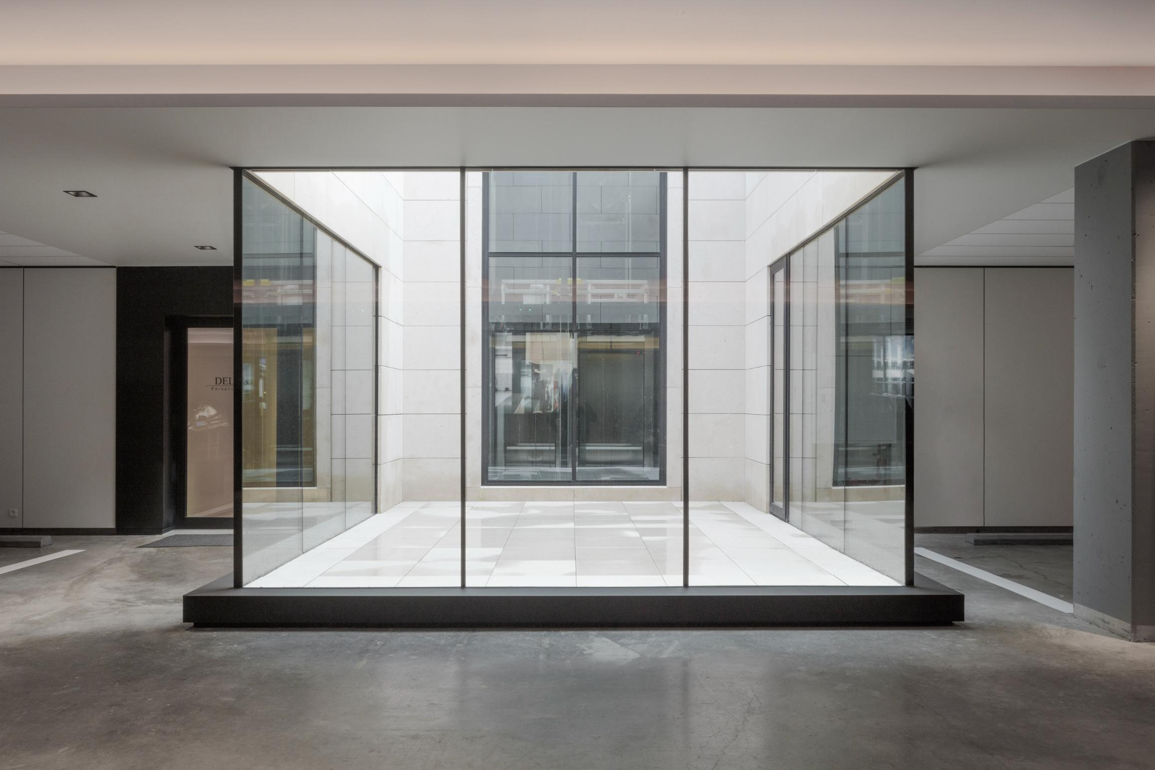 Achteraan zorgt het contact met de tuin voor een duidelijke oriëntatie doorheen het gebouw. Verschillende vides, atriums en daklichten laten licht door tot diep in het gebouw. Terrassen en balkons creëren rustpunten.
