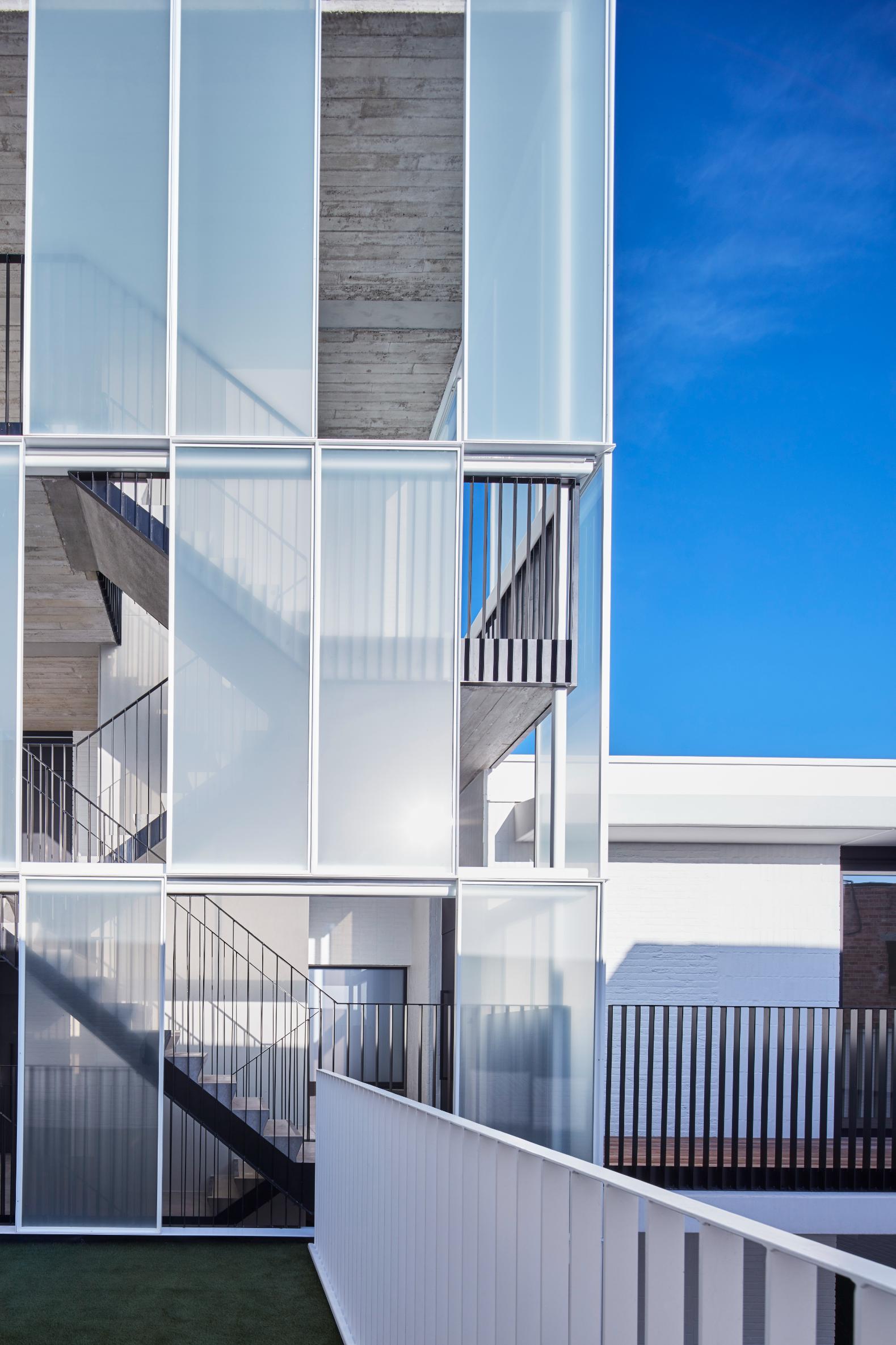 Om de leef- en woonkwaliteiten in het oude stadscentrum van Tienen te bevorderen, kreeg elk appartement een buitenruimte in de vorm van een balkon of loggia. Toegang tot de appartementen is er via een buitenlift of een beschutte buitentrap. Beiden geven uit op plateaus met zicht op het binnengebied. Van de gekende donkere appartementstrap en -gang is er op die manier geen sprake, de circulatie werd een aangename open plaats waar ontmoeten centraal staat.